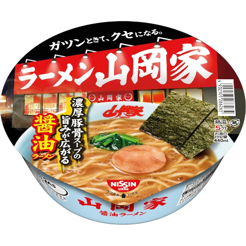 A punch-in-the-face, addictive soy sauce ramen! The wildly popular ramen chain “Ramen Yamaoka-ya” recreated as cup noodles! Rich pork bone broth is the key—a punch-in-the-face, addictive soy sauce ramen!