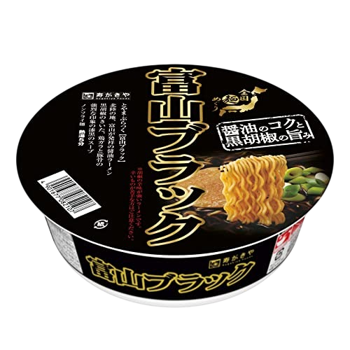 “Toyama Black Ramen” is a soy sauce ramen characterized by its jet-black soup, featuring a strong pepper and salt flavor. It comes with non-fried noodles that have a chewy texture and a smooth, slippery surface.